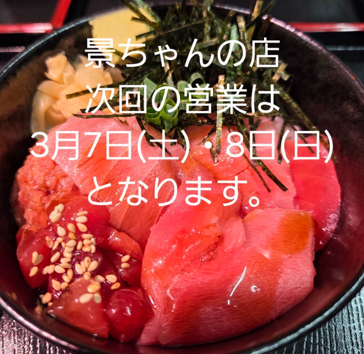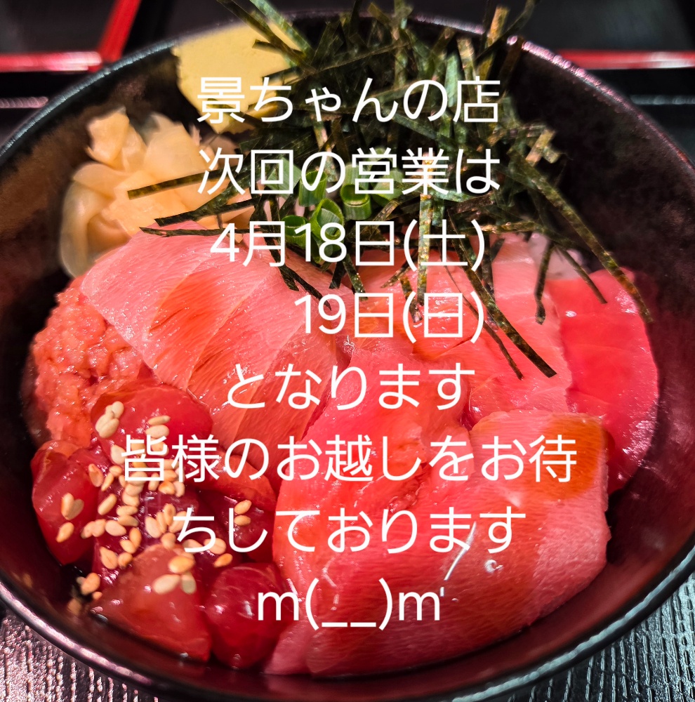 主な仕事の内容は、三崎魚市場で目利きしたまぐろを、他の市場に出荷したり、料理屋さん・お寿司屋さんなどに納品することです。令和3年4月24日より「景ちゃんの店」オープン♪♪皆様の御来店をお待ちしております。店舗住所:神奈川県三浦市三崎5丁目6-3